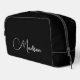 Esta bolsa accesoria puede servir como accesorio diario o bolso de maquillaje, O Regalo a tu criada de honor, damas de honor, chica de flores, madre de la novia y suegra, un simple y minimalista artículos de aseo elegante, una bolsa de maquillaje. Nombre del guión blanco en negro. Este estilo con sólo nombre, para uso diario.