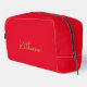 El moderno kit de dopp con nombres personalizados de escritura roja y dorada es elegante. Perfecto para la organización de productos de maquillaje o productos de primera necesidad.