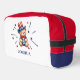 Kit dopp personalizado patriótico o bolsa de artículos de aseo con el nombre de un niño. Diseño con un oso y estrellas de colores rojo, blanco y azul.