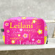 Texto de nombre tipográfico corto personalizado y flores gráficas en amarillo, rosa, blanco y morado claro sobre un fondo rosado caliente. El color de fondo se puede cambiar si es necesario. Divertido texto gráfico personalizado y florido diseño personalizado. Personalizar con su propio nombre, actualmente lee Leilani para obtener ayuda con la personalización y otras longitudes de nombres por favor contáctame. Diseñado por Sarah Trett para www.mylittleeden.com sólo en Zazzle.