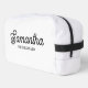 Un kit de dopp boda personalizado en blanco y negro perfecto para regalos de dama de honor, regalos de proposición de dama de honor, regalos de parte de soltera y premios de ducha de novias. Personalizar el kit de dopp a tu nombre y título y crea un regalo único para la fiesta de bodas. Ideal para bolsas de cosmética, bolsas de maquillaje y bolsas de artículos de aseo.