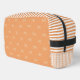 Discover this trendy coquette cosmetic bag! Our pretty orange stripe bow and gingham pattern Dopp kit is a cute, feminine toiletry makeup bag, perfect as a gift for her, girls, daughters, or back to school.