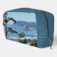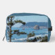 Bolsa de artículos de tocador con cremallera dopp que muestra la foto de un paisaje marino costero de Oregón junto con una sólida punta azul de pizarra y los lados. Bolso de accesorios perfecto para sus productos de aseo para los viajes en directo.