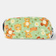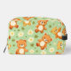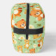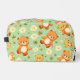 Ositos de peluche marrón y hojas verdes sobre fondo verde.