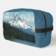 Bolso de artículos de tocador con cremallera dopp que presenta una imagen panorámica y paisajística del monte Hood, Oregón, sobre un bosque y un lago, junto con un sólido techo azul de pizarra y sus lados. Bolso de accesorios perfecto para sus productos de aseo para los viajes en directo.