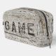 Cartel rústico de madera acristalada con la palabra "Juego" tallada en él.