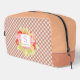 Este diseño de bolsa de aseo presenta una combinación impresionante de acuarela floral roja coral, violeta claro y rosa pastel sobre un patrón de gingham de color naranja melocotón pastel y blanco. El motivo de tartán a cuadros se coloca en diagonal y crea un efecto de estilo cottagecore romántico y femenino. El patrón es clásico y elegante, con un toque de encanto de casa de campo rústica. También hay espacio para personalizar o personalizar con un nombre, monograma, iniciales o texto de su elección. Ya sea que busque un estilo chic y moderno o una vibra de tendencia vintage y retro, este diseño se adaptará a su gusto y personalidad.