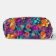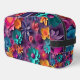 Bolsa de artículos de aseo con un diseño digital de estilo 3d. Flores claras y coloridas con un estilo fresco que parece un recorte de papel. Diseño divertido y fantasioso.