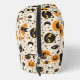 Este diseño presenta un lindo y caprichoso patrón de Halloween lleno de una deliciosa variedad de clásicos iconos espeluznantes. El fondo es de color crema claro, lo que aporta un suave contraste a los diseños atrevidos. El patrón incluye linternas juguetonas jack-o' con diferentes expresiones, gatos negros con ojos amarillos brillantes, cráneos sonrientes y murciélagos amistosos con alas naranjas. Las arañas, las lunas de media luna, las estrellas, las setas y los símbolos mágicos se dispersan por todas partes, lo que contribuye a la encantadora atmósfera de Halloween. La paleta de colores es llamativa en negro, naranja y amarillo, creando un diseño animado y festivo perfecto para decoraciones de Halloween, ropas o temas fiestas. El conjunto es divertido y encantador, ideal para celebrar la temporada espeluznante con un toque de dulzura.