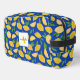 Fruto de cítricos colorido, bolsa de inodoro cosmético con patrón de limón con nombre personalizado y inicial. Elementos coincidentes disponibles. Arte original de artistas que poseen ilustraciones. Use el botón de mensaje que aparece a continuación para obtener ayuda sobre la personalización y las solicitudes especiales. © Zoe Chapman Design