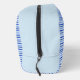 Este neceser presenta un diseño moderno de rayas en diferentes tonos azules sobre fondo azul pálido. ¡Un regalo personalizado maravilloso para ella y para él, un accesorio de viaje hermoso!