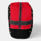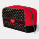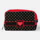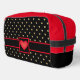 Este diseño tiene un patrón cardíaco de color dorado, en los paneles delantero y trasero. En el centro hay una banda negra con un corazón rojo en el centro. La parte superior, los lados y el fondo son un sólido y coordinado rojo y negro.