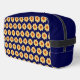 Bolso de artículos de tocador con cremallera dopp que muestra la imagen de una flor Dahlia amarilla impresa en un patrón repetido en un fondo azul marino junto con paneles laterales y superiores color azul marino sólido. ¡Un diseño floral y divertido! Bolso de accesorios perfecto para sus productos de aseo para los viajes en directo.