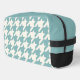 El diseño de esta bolsa de artículos de aseo incluye una impresionante combinación de tonos azul verde azulado, verde marisco y marfil color crudo y color crudo color escocés con manchas de gallo. El elegante motivo del tartan-de-poule es de diseño. La decoración es a la vez clásica y elegante, con un toque moderno de casa de campo. También hay espacio para el personalizar o la personalización con el nombre, el monograma, las iniciales o el texto de su elección. Ya sea que busques un estilo vintage de moda o un ambiente de tendencia retro, este diseño se adaptará a tu gusto y personalidad.