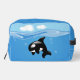 Adorable personalizado regordete ballena Orca con un pequeño corazón blanco cerca de su cola.