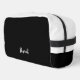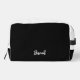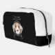 El diseño presenta el ilustracion de un beagle relajante con auriculares y un bubblegum rosa que sopla. Con tu texto personalizado y tu color de fondo favorito, hace un bolso de tocador lindo, divertido y único.