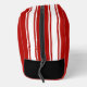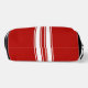 Diseño de patrones de rayas de autos de carreras dobles blanco y elegante en un fondo rojo. Personalizar con el nombre, el monograma, las iniciales o el (limitado) texto de su elección. Diseñado para el elegante deporte de autos de carreras, Nascar, Indy 500, Le Mans o el hincha del Grand Prix, el amante o propietario de coches clásicos, coches musculares, barras calientes o espectáculos de coches.