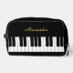 Exquisite black Dopp Kit bag with a piano keyboard design, and a space to add your own name to personalise. Delete the name if not required.