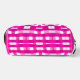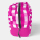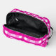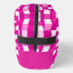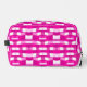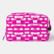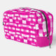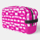 This dopp kit features a striking geometric block pattern in alternating shades of pink, magenta, and white, creating a dynamic, contemporary design with a subtle three‑dimensional effect.