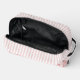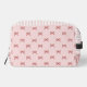 Discover this trendy coquette cosmetic bag! Our pretty pink and red bow and stripe pattern Dopp kit is a cute, feminine toiletry makeup bag, perfect as a gift for her, girls, daughters, or back to school.