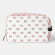 Discover this trendy coquette cosmetic bag! Our pretty pink and red bow gingham Dopp kit is a cute, feminine toiletry makeup bag, perfect as a gift for her, girls, daughters, or back to school.