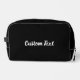 Este kit dopp negro tiene texto en escritura blanca. El texto puede editarse o eliminarse.
