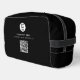 Un moderno kit minimalista personalizado de dopp de negocios con logotipo de negocios y código QR. Personalice con su logotipo, código QR y detalles para crear su propio y elegante kit de desarrollo empresarial en blanco y negro. Personalizar aún más con un fondo de color personalizado o una fuente.
