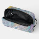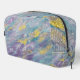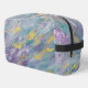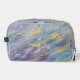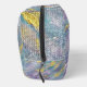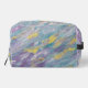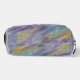Quiet Reign is an abstract piece defined by its soothing, cool color palette and energetic brushwork. The painting features diagonal sweeps of soft lavender, tranquil aqua, and deep violet, punctuated by bold, shimmering metallic gold accents. The overall effect is one of serene motion, like a gentle rain shower illuminated by a hidden golden light. This artwork adds a touch of modern, peaceful sophistication to any space or product.
