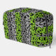 Este diseño de rayas verticales pixelado digital único añade un toque moderno a una bolsa de artículos de aseo de viajes tradicional. La combinación de colores verde, gris y negro del personalizable crea un patrón llamativo y llamativo que seguramente hará una declaración. Las franjas grises y verdes de dos tonos sobre un fondo negro proporcionan un contraste sofisticado, lo que hace de esta bolsa un gran accesorio para cualquier viajero que quiera destacar de la multitud.
