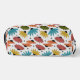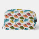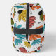 Retro-inspired pattern of bright flowers in blue, green, yellow, red, and orange with vintage mid-century modern halftone and star details.