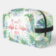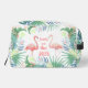 Bonita Historia De Hadas Para Dos Flamingo - Ilustracion Acuático. ¡Sean Felices Para Siempre! Regalo de Fiesta del día de la boda. Hermoso flamingo rosa, flores y follaje exóticos tropicales, adorno floral de jungla, jardín, verano, evento de bodas, regalo para ellos, para la pareja, salven la fecha, Novia Groom, fiesta de aniversario, viaje, vacaciones, (regalos para ella y para él). Accesorios > Bolsas y carteras > Bolsas cosméticas y de tocador Diseño elegante con Monograma y caligrafía - plantilla de texto. Personalízalos añadiendo tu texto de deseos y Nombres.