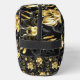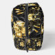 Patrón incomparable con orquídeas negras y doradas, ricamente decoradas con ramas negras de eucalipto y delicadas ramitas de pistacho de joyas sobre fondo negro. Orquídea de joyería de oro.