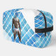 SlipperyJoe hombre muscular seis paquetes abs malla ropa interior blanca malla azul mosaicos en forma de diamante moderno fondo de superficie digital abstracción artística orgullo gay regalos LGBTQIA carne y píxeles colisionan irreal fusión de sueños únicos diseño audaz