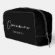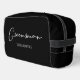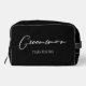 Esta elegante y sencilla bolsa de aseo para padrino presenta los nombres de tus padrinos bajo una tipografía blanca minimalista sobre negro. Personaliza este regalo de kit de aseo elegante y moderno para tu boda o despedida de soltero.