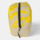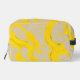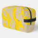 This dopp kit features a flowing pattern of organic yellow swirls layered over soft beige and subtle gray accents, creating a smooth, contemporary abstract aesthetic.
