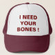 Camionero marrón/blanco que dice "NECESITO TUS HUESOS"