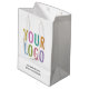 A veces solo necesitas unas pocas bolsas de regalo personalizadas, así que aquí tienes una excelente manera de obtener justo lo que necesitas en el color y diseño que desees. Personaliza esta bolsa de regalo con el logotipo de tu empresa, texto personalizado y color. Disponible en acabado mate o brillante. La bolsa de regalo mediana mide 7 pulgadas x 4,5 pulgadas x 10 pulgadas. Fabricado por Digiwrap. No hay cantidad mínima de pedido ni tarifa de configuración.