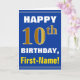 Este sencillo diseño de tarjetas de felicitación con temática de cumpleaños presenta un cálido deseo de cumpleaños como "¡FELIZ décimo cumpleaños, nombre!" en la parte delantera, en negrita con un fondo de color azul. El número de cumpleaños tiene un aspecto de color falso/imitación dorado. El nombre del frente puede ser personalizado. El interior incluye un mensaje de cumpleaños de personalizable. Una tarjeta de felicitación como esta podría ser una manera divertida de entregar deseos de cumpleaños a alguien que está celebrando su décimo cumpleaños. [~Z0000278]
