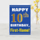 Negrita, azul, falso oro 10 cumpleaños con tarjeta