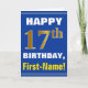 Negrita, azul, falso oro 17 cumpleaños con tarjeta