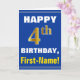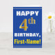 Negrita, azul, falso oro 4º cumpleaños con tarjeta
