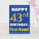 Negrita, azul, falso oro 43 cumpleaños con tarjeta