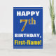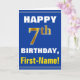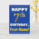 Este sencillo diseño de tarjetas de felicitación con temática de cumpleaños presenta un cálido deseo de cumpleaños como "¡FELIZ 7° cumpleaños, nombre!" en la parte delantera, en negrita con un fondo de color azul. El número de cumpleaños tiene un aspecto de color falso/imitación dorado. El nombre en la parte delantera se puede personalizar. El interior incluye un mensaje de cumpleaños que se puede personalizar. Una tarjeta de felicitación como esta podría ser una manera divertida de entregar deseos de cumpleaños a alguien que está celebrando su séptimo cumpleaños. [~Z0000278]