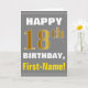 Este sencillo diseño de tarjetas de felicitación con temática de cumpleaños presenta un cálido deseo de cumpleaños como "¡FELIZ 18º CUMPLEAÑOS, nombre!" en la parte delantera, en negrita con un fondo gris (gris) de color. El número de cumpleaños tiene un aspecto de color falso/imitación dorado. El nombre en la parte delantera se puede personalizar. El interior incluye un mensaje de cumpleaños que se puede personalizar. Una tarjeta de felicitación como esta podría ser una manera divertida de ofrecer deseos de cumpleaños a alguien que está celebrando su decimoctavo cumpleaños. [~Z0000283]