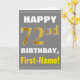 Negrita, gris, oro falso 72 cumpleaños con tarjeta