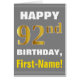 Negrita, gris, oro falso 92º cumpleaños con tarjet