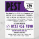 Volante publicitario moderno negrita, control de plagas por la tienda de tarjetas de visita.