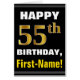 Este sencillo diseño de tarjetas de felicitación con temática de cumpleaños presenta un cálido deseo de cumpleaños como "¡FELIZ cumpleaños número 55, nombre!" en el frente, en negrita sobre fondo de color negro. El número de cumpleaños tiene un aspecto de color falso/imitación dorado. El nombre en la parte delantera se puede personalizar. El interior incluye un mensaje de cumpleaños que se puede personalizar. Una tarjeta de felicitación como esta podría ser una manera divertida de entregar deseos de cumpleaños a alguien que está celebrando su cincuenta cumpleaños. [~Z0000275]