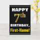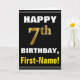 Este sencillo diseño de tarjetas de felicitación con temática de cumpleaños presenta un cálido deseo de cumpleaños como "¡FELIZ Séptimo cumpleaños, nombre!" en el frente, en negrita con un fondo de color negro. El número de cumpleaños tiene un aspecto de color falso/imitación dorado. El nombre en la parte delantera se puede personalizar. El interior incluye un mensaje de cumpleaños que se puede personalizar. Una tarjeta de felicitación como esta podría ser una manera divertida de entregar deseos de cumpleaños a alguien que está celebrando su séptimo cumpleaños. [~Z0000275]