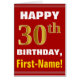 Este sencillo diseño de tarjetas de felicitación con temática de cumpleaños presenta un cálido deseo de cumpleaños como "¡FELIZ 30 cumpleaños, nombre!" en la parte delantera, en negrita con un fondo de color rojo. El número de cumpleaños tiene un aspecto de color falso/imitación dorado. El nombre del frente puede ser personalizado. El interior incluye un mensaje de cumpleaños que se puede personalizar. Una tarjeta de felicitación como esta podría ser una manera divertida de ofrecer deseos de cumpleaños a alguien que esté celebrando su trigésimo cumpleaños. [~Z0000276]